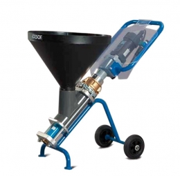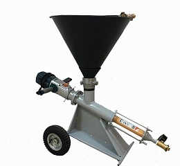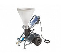 Надежный и высокопроизводительный шнековый насос для профессионального использования. Предназначен для подачи цементных материалов с размером твердых частиц до 2,5 – 3,0, а также водных суспензий и микроэмульсий. Насос оснащен электронной системой регулировки давления и подачи материала, обеспечивающей плавную бесступенчатую регулировку давления и подачи. Насос установлен на транспортную тележку.